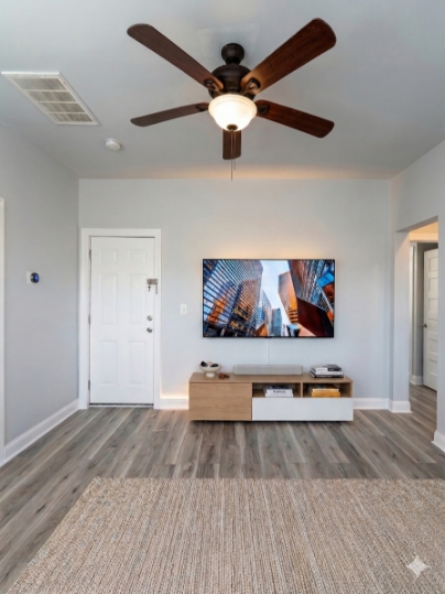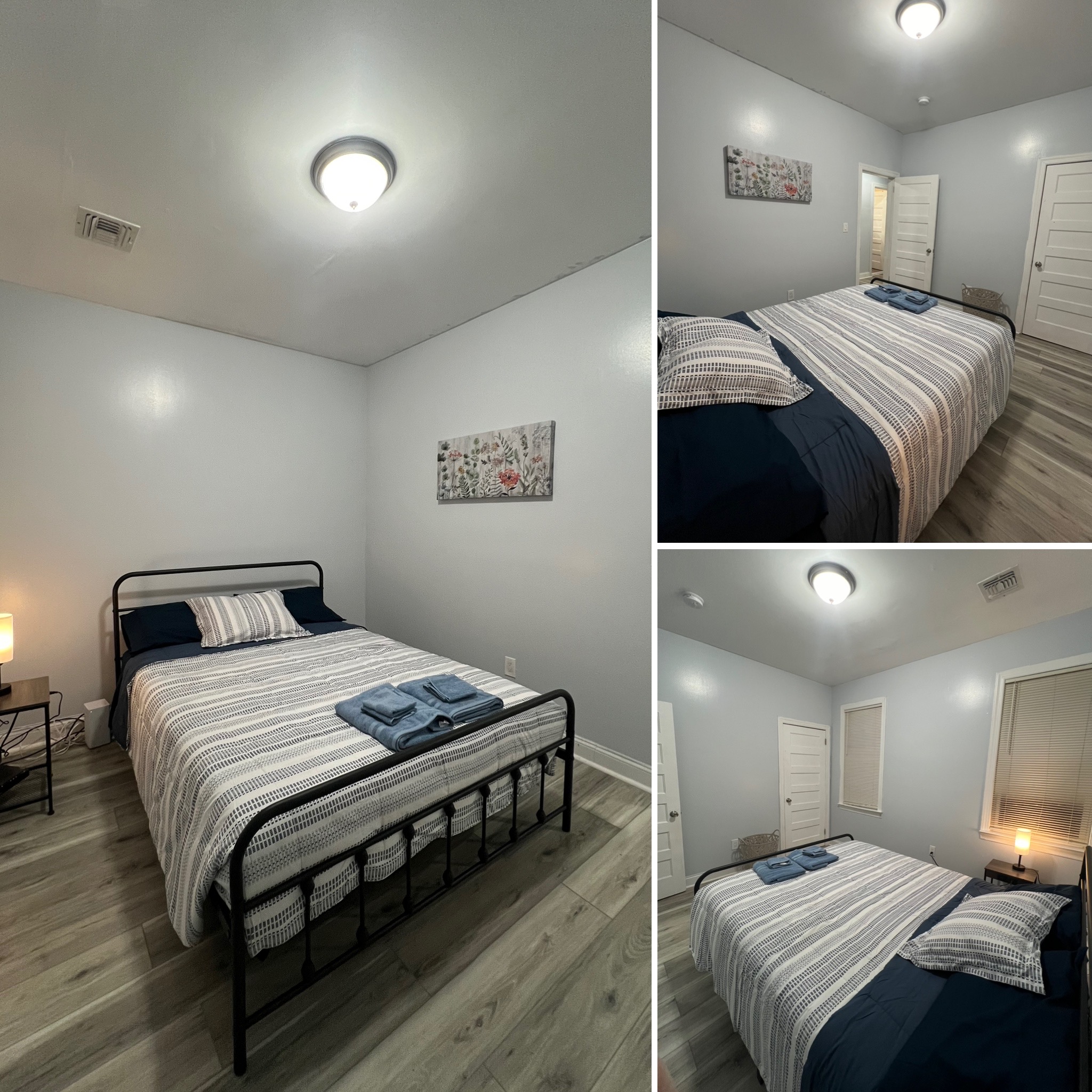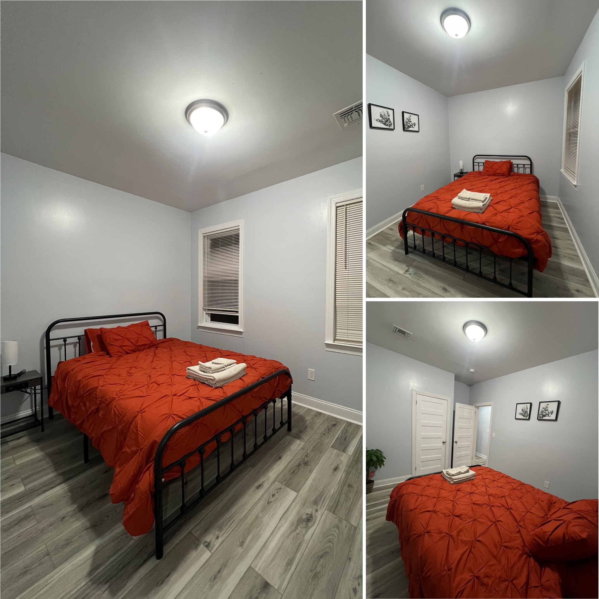 A quiet 2-bedroom apartment designed for travelers who want peace at night and fast access to Newark Airport and Manhattan by day. Two bedrooms, one bath, full kitchen, living room, and a private exterior deck — plus a dedicated coworking/content studio for remote work, podcast recording, or creative projects.